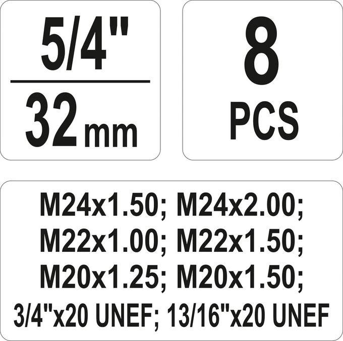 - Размеры резьбовых гаек: М24 х 1,5, М24 х 2, М22 х 1, М22 х 1,5, М20 х 1,25, М20 х 1,5, ¾, x 20 UNEF, 13/16 x 20 UNEF.