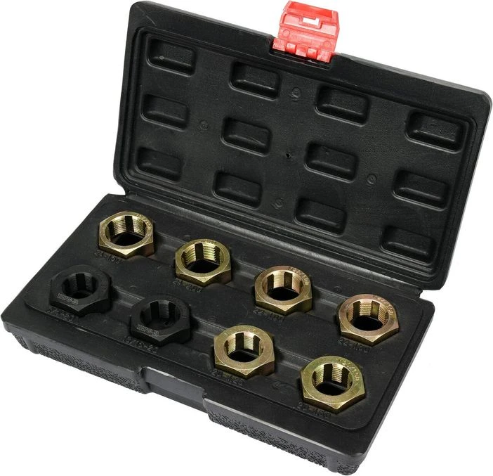 Профессиональный набор из 8 элементов для ремонта поврежденных резьб на полуосях автомобилей.