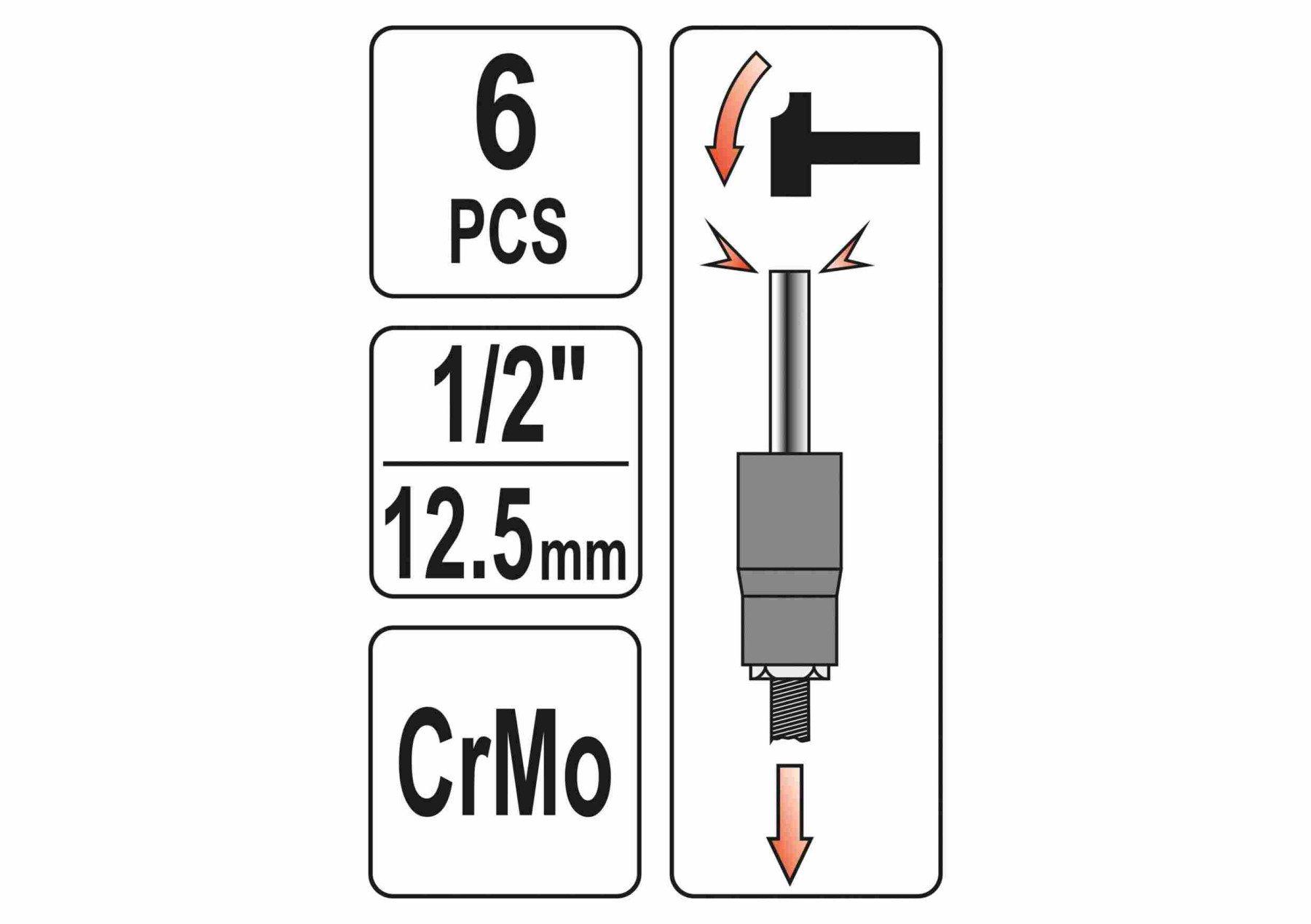 YATO Набір екстракторів : квадрат-1/2", М17-27 мм, Cr-Mo, для видалення зломаних гвинтів 6 Од.
