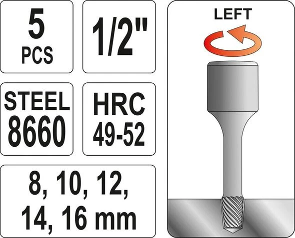 Набор экстракторов от бренда YATO. Поставляется в пластиковой коробочке для удобного хранения.