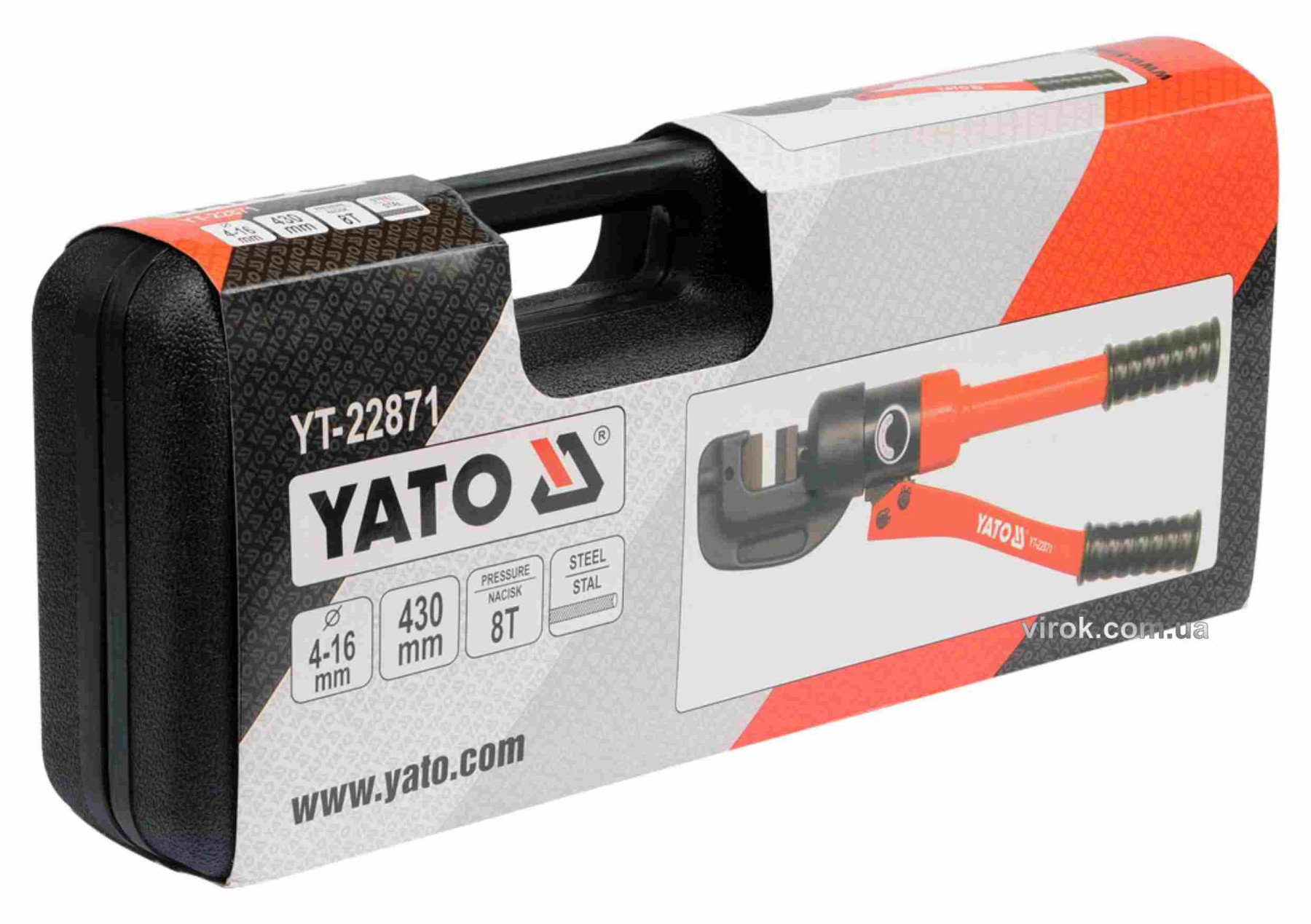 Ножиці гідравлічні YATO YT-22871 застосовуються для різання металевих прутів, дроту та арматури, а також для перекушування запірно-пломбувальних пристроїв складів, сховищ, залізничних вагонів.
