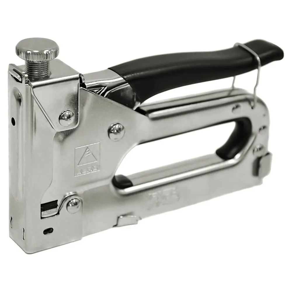 Сшиватель отделочный, корпус которого изготовлен из металла и имеет антикоррозийное защитное хромовое покрытие. Используется с прямыми скобами 11,3 мм х 4-14 мм. сшиватель оснащенный механизмом для простой зарядки скоб. Имеет винт регулировки силы удара, позволяет корректировать удар в зависимости от твердости материалов. Окошко для быстрой проверки наличия скоб. Съемная нижняя часть. Эргономичная резиновая накладка на ручке облегчает работу с инструментом. Имеет фиксатор ручки в горизонтальном положении, для удобства в хранении сшивателя. Применяется для быстрого крепления материала с помощью скоб к дереву, ДСП, пластмассы и других поверхностей. Используется при выполнении садовых работ, декорировании, ремонте и реставрации мебели и при других столярных работах.