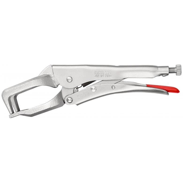 42 14 280 Кліщі затискні зварювальні для затискання та фіксації круглих, профільованих та плоских матеріалів. Для високого навантаження. з гвинтом і важелем розблокування. Для роботи однією рукою. високе зусилля затиску завдяки важелевому механізму. - Діапазон затиску: круглі деталі: 30 – 65mm - Діапазон затиску квадрат: 50mm Комплект поставки: 1 x KNIPEX