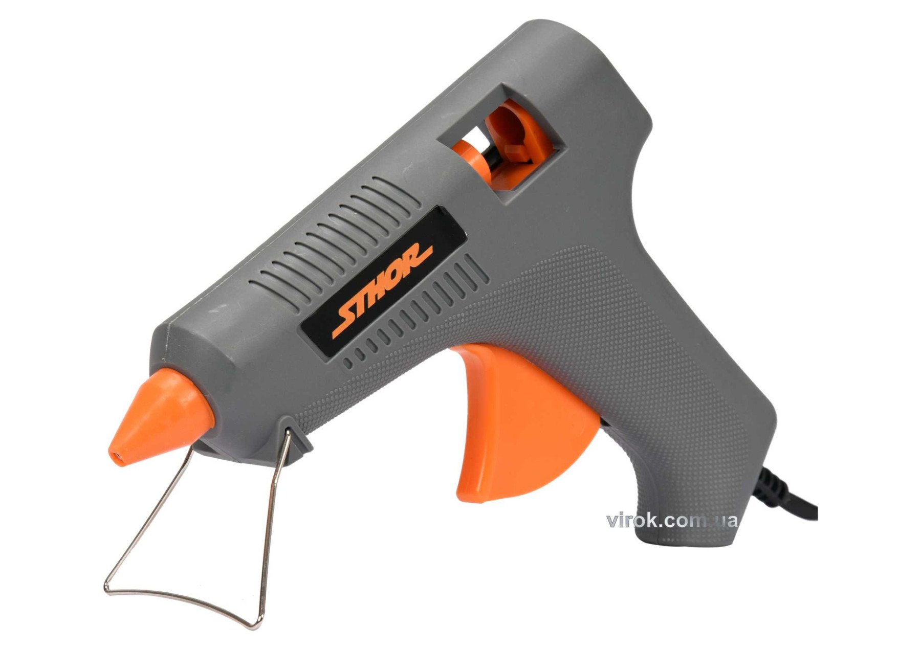 Клейовий пістолет STHOR 73057 застосовується для склеювання різних твердих матеріалів – натуральних або синтетичних (дерево, пластик, картон, скло, кераміка, камінь, тканини, пробка, шкіра, метал). Корпус інструменту виготовлений з термостійкого пластика, що зменшує його вагу, роблячи роботу менш енерговитратною.