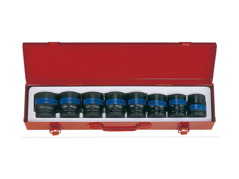Квадрат, що приєднується 3/4" Розмір головок: 27, 29, 30, 32, 34, 35, 36, 38 мм Металевий футляр: 445 х 100 х 65 мм Кількість: 8 предметів Тип головок: стандартні, полегшені Вага: 3.5 кг