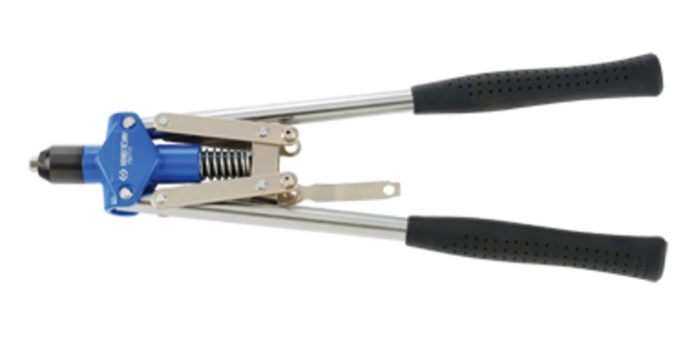 Кліщі заклепувальні d=3,2-6,4 мм виконаний з алюмінію, а ручки зі сталевої труби з гумовими ручками, для уникнення зісковзування. Довгі ручки працюють за принципом важеля. Забезпечують плече завдяки якому мінімізується фізична сила, необхідна для роботи з усіма розмірами заклепок. Повна його довжина складає 450 мм (17-1/2"). Можна працювати із заклепками з таких матеріалів як сталь, алюміній, мідь, нержавіюча сталь. Діаметр заклепок Матеріал заклепок Алюміній Мідь Сталь Легована сталь 3.2 мм (1/8") ● ● ● ● 4.0 мм (5/32") ● ● ● ● 4.8 мм (3/16") ● ● ● ● 6.4 мм (1/4") ● ● ● ●