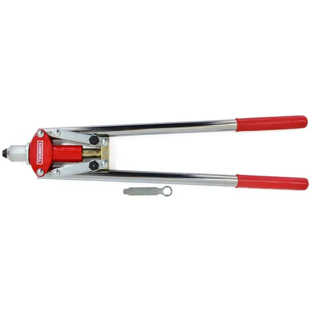 Заклепник металевий, корпус виготовлений зі сталі та має антикорозійне хромове захисне покриття. До комплекту входять 3 змінні головки під заклепки 3,2 мм, 4 мм, 4,8 мм та ключ для швидкої зміни головок. Зручні прогумовані ручки. Видовжена головка полегшує роботу у заглибленнях. Заклепник застосовується з алюмінієвими заклепками для скріплення листів металу, пластику, фанери та інших матеріалів. Використовується для невеликих і легких складальних робіт. З його допомогою можна швидко і міцно з'єднати деталі в домашніх умовах без допомоги професіоналів. Завдяки традиційній формі та матеріалам, зручний та надійний інструмент.