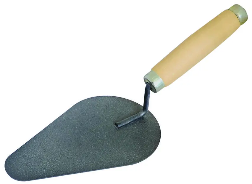 Кельма печника овальной формы со стальным полотном с антикоррозийным покрытием. Кельма печника имеет изогнутую ручку и крашеную деревянную рукоятку для удобной работы с инструментом. Кельма печника представлена ??в размере 165х100 мм. Кельма печника используется для укладки, разравнивания, перемешивание и наброски штукатурного или песчано-цементного растворов на поверхность при проведении отделочных работ при проведении строительных печных работ и работ, которые связанны с укладкой кафельной или керамогранитной керамической настенной или напольной плитки.