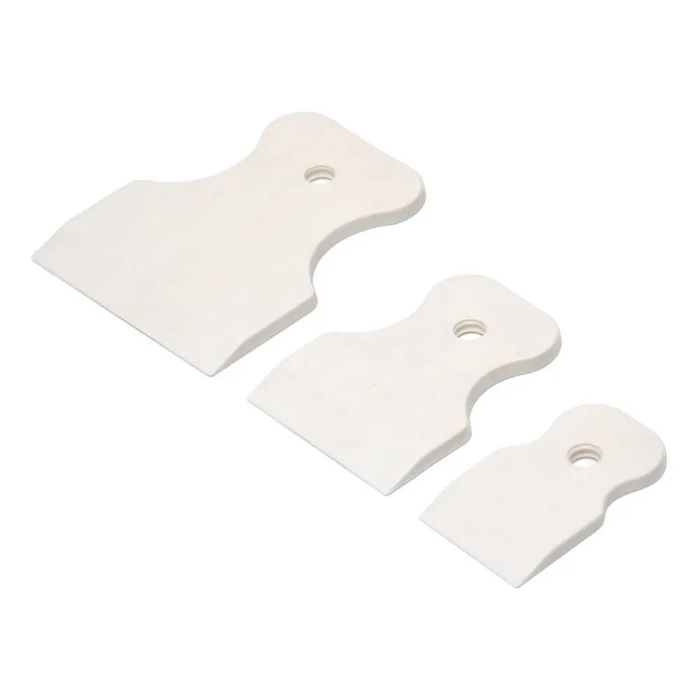 Набір шпателів (3 шт) виготовлений з білої гуми. Шпателі в наборі мають отвори для підвішування. Шпателі в наборі призначені для формування швів і видалення залишків фуговочного матеріалу в пустотах, тріщинах, щілинах, а також для обробки швів настінної плитки при облицювальних роботах під час проведення будівельних робіт. Шпателі в наборі зручно використовувати для заповнення швів настінної плитки та цегляної кладки. Данні шпателі в наборі дозволяють пришвидшити процес фуговочних робіт, якісно та охайно їх виконати.