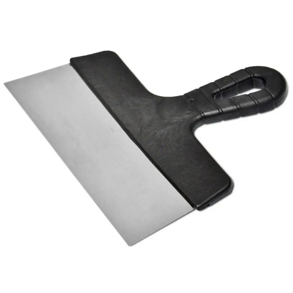 Шпатель с пластмассовой ручкой имеет лезвие, которое изготовлено ??из нержавеющей стали. Шпатель имеет удобную пластмассовую ручку с отверстием для подвешивания. Шпатель служит для проведения штукатурных работ для нанесения, распределения и выравнивания шпаклевочных смесей при отделочных работах. Шпатель имеет ширину от 150 мм до 600 мм. Шпатель с шириной от 350 мм до 600 мм используется для фасадных работ. Шпатель используются при проведении штукатурных работ для нанесения, распределения и разравнивания строительных смесей по обрабатываемой поверхности во время проведения строительных работ.