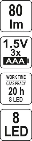 YATO Ліхтар LED на батарейки 3Х ААА з 8 діодами , магніт + кліпса