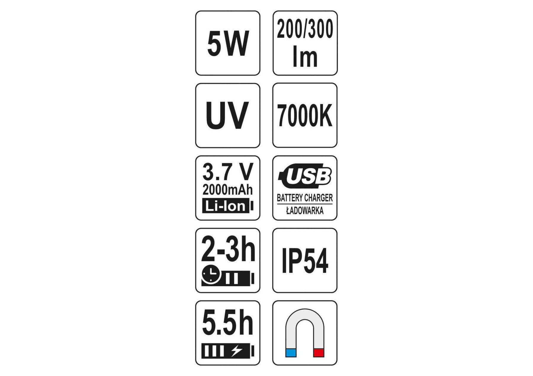 Універсальний cвітлодіодний ліхтар YATO YT-08580 стане в нагоді в майстерні, на будівництві або в поїздці. Завдяки вбудованій УФ-лампі він дозволить Вам діагностувати системи кондиціонування автомобіля, шукати бурштин або тестувати банкноти. Додатковою перевагою є водонепроникність (IP54) і магніт внизу і на затиску ліхтарика.