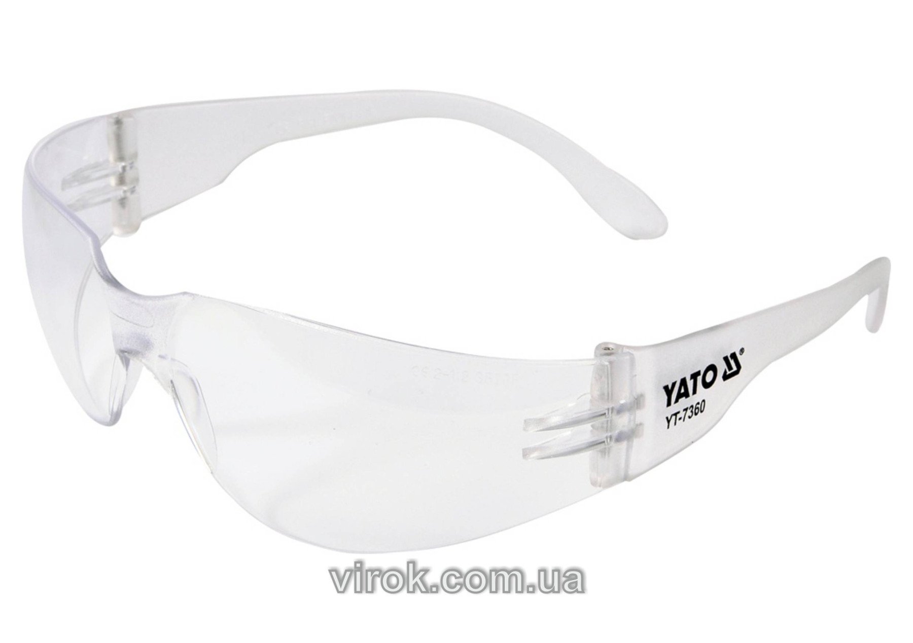 Захисні окуляри YATO відкриті прозорі призначені для захисту очей від впливу, який виникає при ручній та машинній обробці металу, деревини, пластику, кераміки.