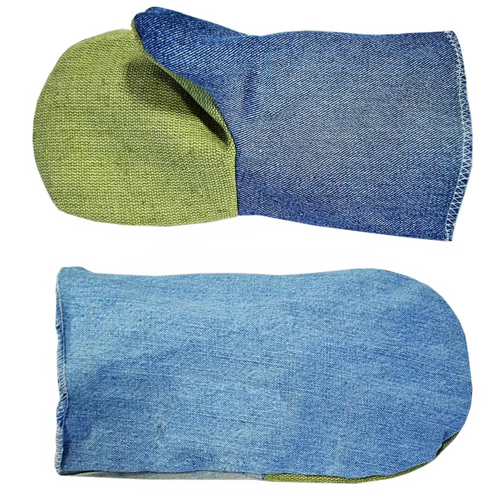 Рукавицы рабочие комбинированные из х/б, брезента и джинсы используются для надежной защиты рук рабочего от истирания, общепроизводственных загрязнений, а также при работе с горячими поверхностями. В зависимости от используемой ткани и потребительских соображений бывают: пропитанные, огнестойкие, упрочненные. Из-за достаточно большого размера позволяют надевать под рукавицы тонкие перчатки. Рукавицы рабочие используют в промышленных условиях, где руки подвержены механическому воздействию, при черновых и тяжелых ремонтно-строительных работах, они также защищают от брызг горячих искр и расплавленного металла. Рукавицы рабочие хорошо справляются с трениями при переноске тяжелых материалов, кирпичей, металлических изделий, при работе возле горячей печи.