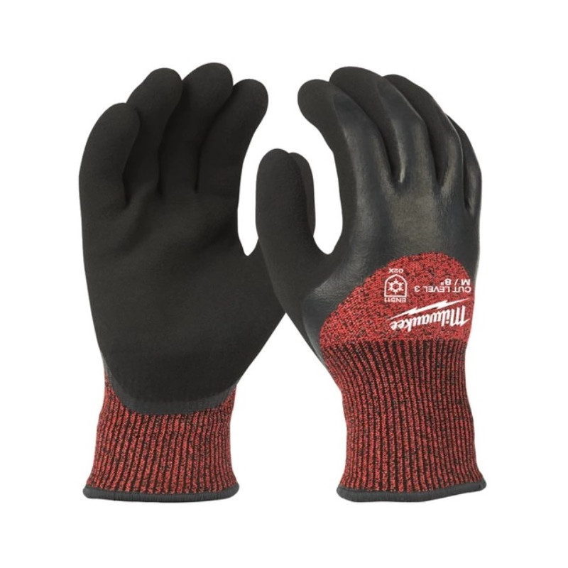 Рукавички з рівнем опору порізам 3, зимові розмір M/8 особливості: Зимовий утеплювач забезпечить збереження тепла під час роботи на холоді. Покращений захист від води та холоду завдяки тому, що покриття складає 3/4 від площі рукавички. Забезпечують більший опір порізам та стирання ніж рукавички з рівнем 1, ідеальний захист при зачищенні проводів, нарізанні різьблення на трубах та при різанні. Надійний хват. Покриття нітрилом краще веде себе, ніж покриття з інших матеріалів у широкому діапазоні температур і при роботі з деталями покритими олією. Високий опір проколам та порізам при роботі з гострими матеріалами. Рукавички не змінюють форму навіть після тривалого носіння. SMARTSWIPE™ на долонях та кінчиках пальців - дозволяють користуватися пристроями з активними екранами (смартфони, планшети), не знімаючи рукавичок. Сертифіковані в Європі на опір порізу та захист від холоду: EN420, EN388:2016 (2442C), EN511 (02X). Розмір М/8 Матеріал: HPPE, поліестер, скловолокно, акриловий утеплювач та покриття летексом на долоні. Комплект поставки: Рукавички зимові Milwaukee із захистом від порізів, рівень 3, розмір M/8 - 1 пара