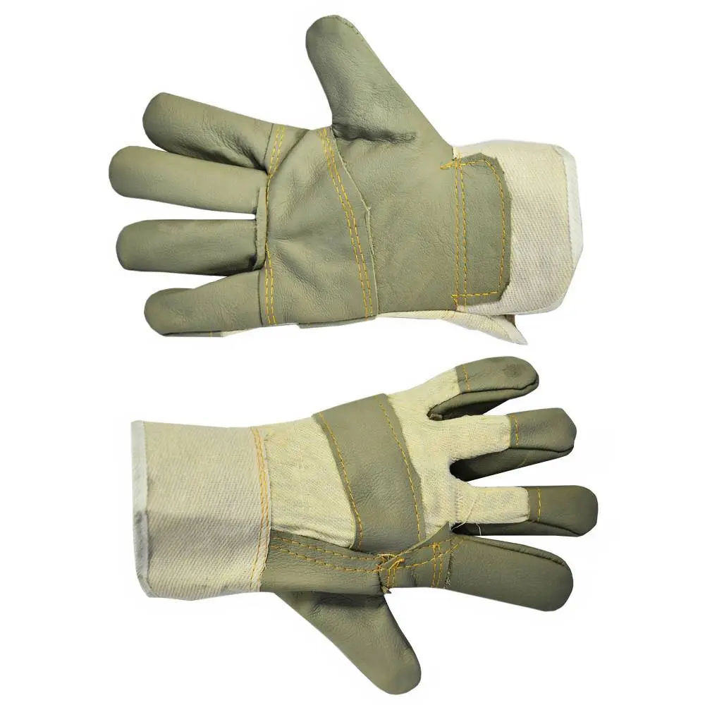Перчатки рабочие, сшитые из телячьей кожи и ткани, предназначены для выполнения бытовых и строительных работ. Они комфортны, не сковывают движения пальцев. Перчатки обеспечивают надежную защиту от загрязнений и механических повреждений при выполнении работ. Подкладка из трикотажа. Могут использоваться в холодное время года. Манжет тип 'Крага'. Твёрдый манжет обеспечивает дополнительную защиту запястья от механических повреждений и хорошую вентиляцию кисти при работе. Отличительной особенностью является возможность быстрого снятия перчаток. Длина 26 см. Ширина 13 см. Масса 165 г.