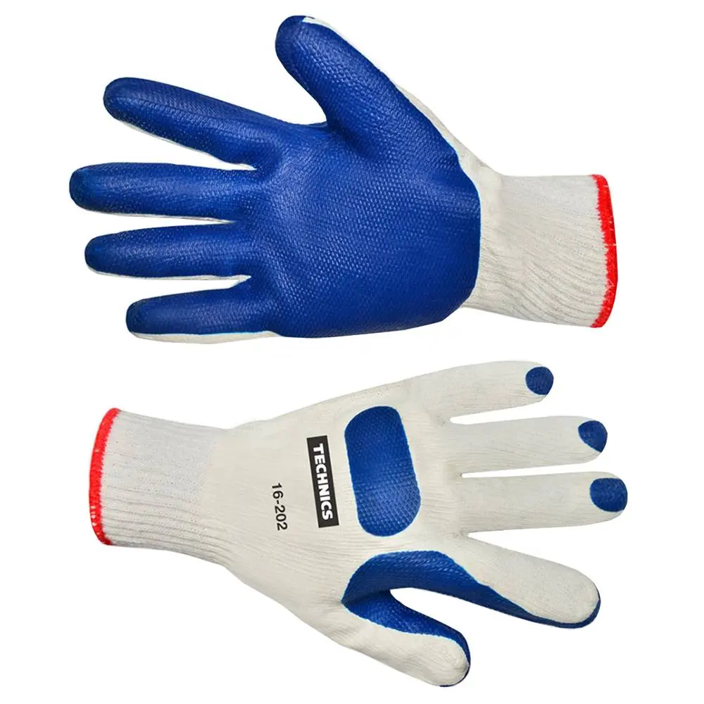 Рукавички трикотажні з міцного в'язаного полотна без швів з текстурованим латексним покриттям з внутрішньої сторони долоні і зовні в області кісточок. Латексне покриття перешкоджає ковзанню при роботі з гладкими і слизькими поверхнями, а також збільшує термін служби виробу, перешкоджає зносу. Еластичний в'язаний манжет захищає зап'ястя від подразнень і не дозволяє бруду потрапити всередину рукавички. Призначені для захисту рук від загальновиробничих шкідливих факторів і механічного стирання. Застосовуються в промисловості, побуті, при виконанні технологічних, вантажно-розвантажувальних, будівельних і господарських робіт. Довжина 24 см. Ширина 12 см. Вага 100 г.