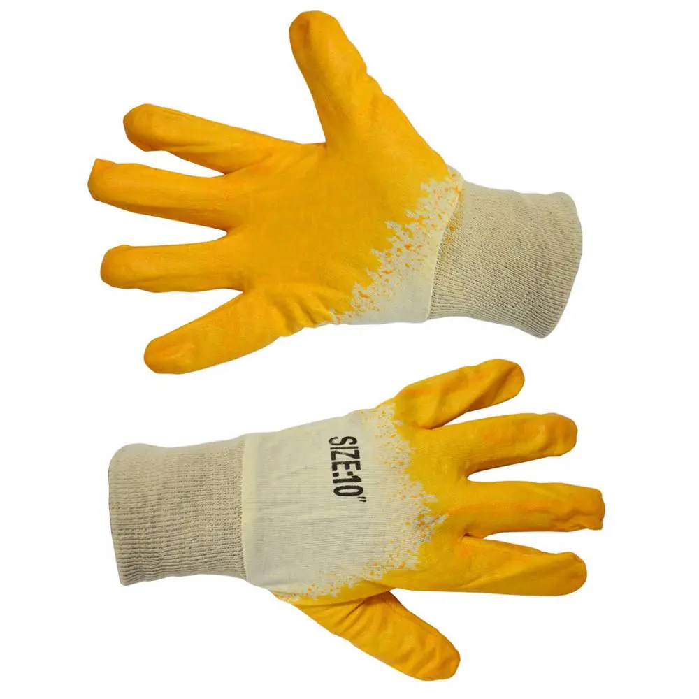 Рукавички виготовлені з бавовни і мають покриття латексу, облив 3/4. Забезпечують високий рівень захисту рук від механічних пошкоджень і порізів. Більш зносостійкі, ніж рукавички з ПВХ крапкою. Їх перевага - антиковзне покриття, що дозволяє чітко фіксувати в руках деталі і інструменти. Забезпечують відмінний захват на мокрих і слизьких поверхнях. Рукавички призначені для захисту рук при ремонтних і будівельних роботах, незначних механічних навантаженнях, в сільському господарстві, при пакувальних роботах, при роботах з обладнанням, металом, керамікою, мокрими предметами. Довжина 24 см. Ширина 11 см. Вага 66 г.