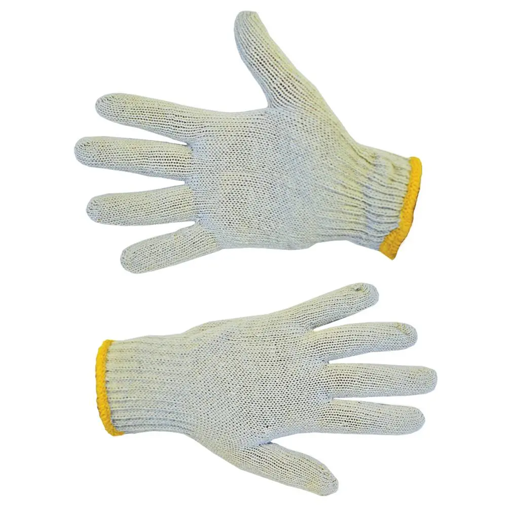 Перчатки плетенные для защиты рук при выполнении складских, монтажных, бытовых и садовых работ. Перчатки рабочие имеют значительную долю хлопка, они позволяют «дышать» рукам и обеспечивают комфорт в работе, свободный воздухообмен предотвращает потение рук, полиэстер придает прочности, резинка на манжете прочно фиксирует перчатку на руке, предотвращая попадание строительного и бытового мусора, оверлок предотвращает распускание перчатки. Рекомендуются при работах средней тяжести. Хлопок 65%, полиэстер 35%. 7 нитей в плетении, класс вязания 10. Цвет серый. Размер L. Длина 23,5 см. Ширина 10 см. Масса 44 г.