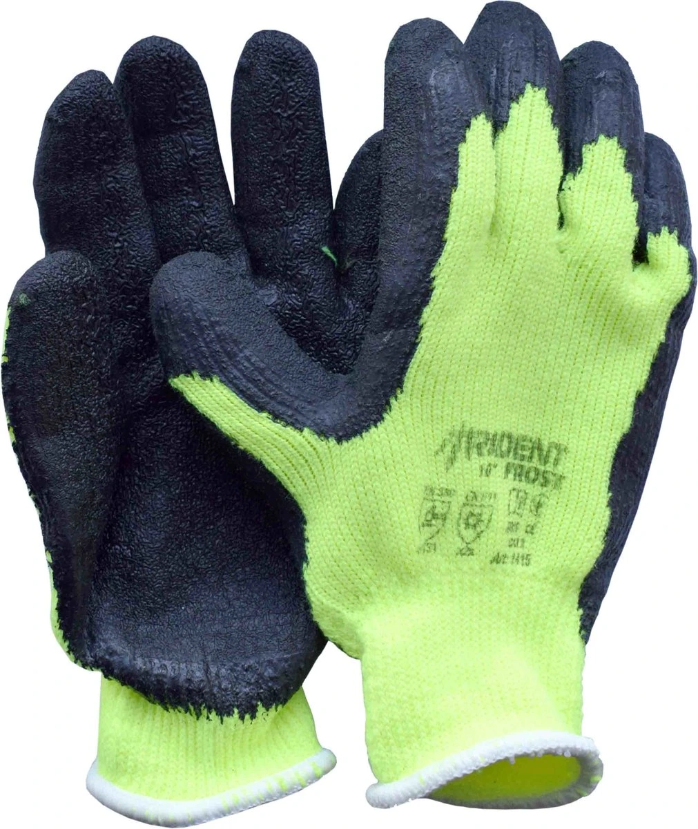 VIROK Рукавиці теплі TRIDENT-FROST трикотажні бавовняні жовті покритті рифленним латексом, розмір 10 | 83V013