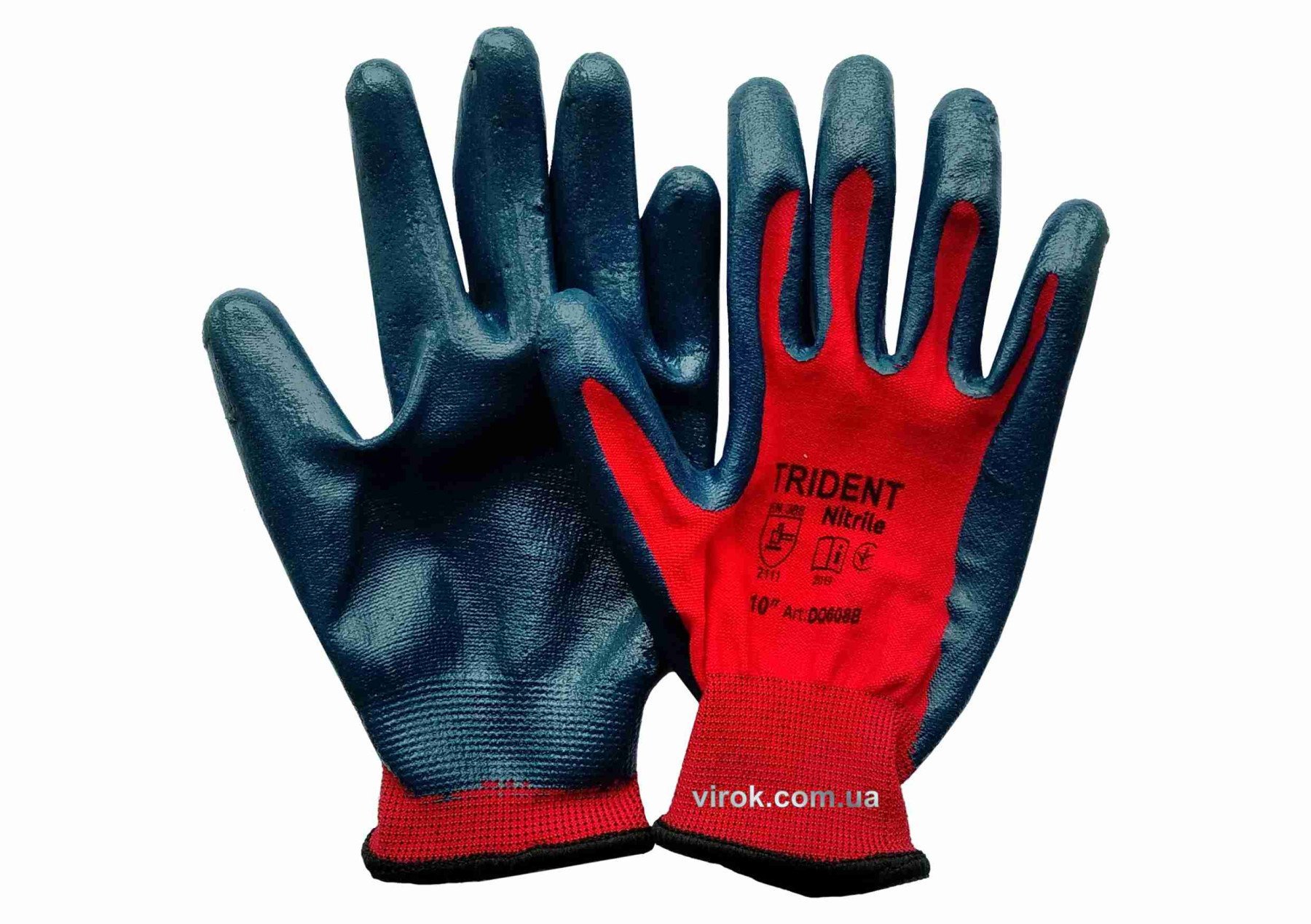 VIROK Рукавиці TRIDENT трикотажні поліестерові 13 клас, покриті нітрилом, розмір 10 | 83V012