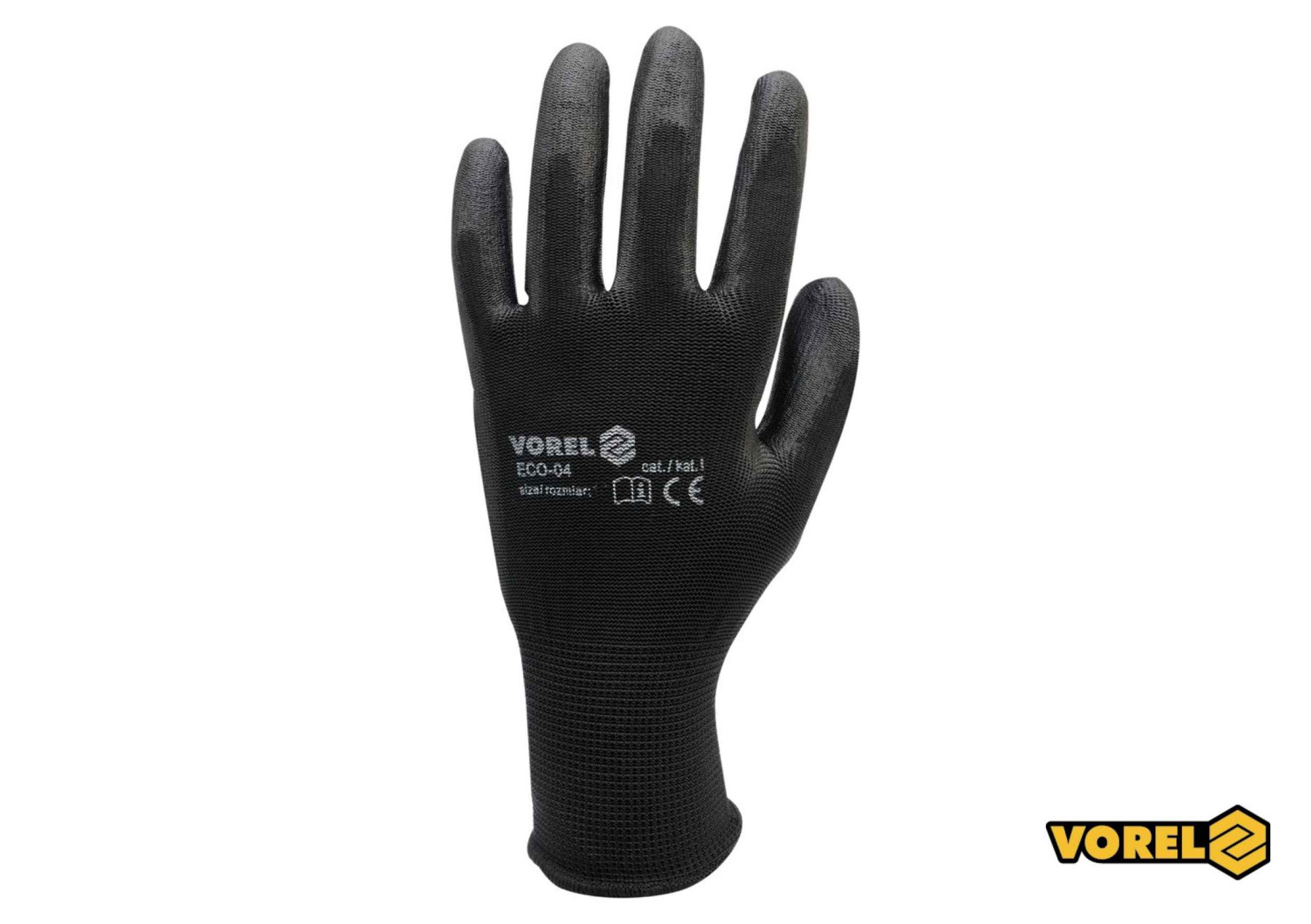 VOREL Рукавиці робочі : чорні, поліестер покритий поліуретаном, розмір 10 | 74080