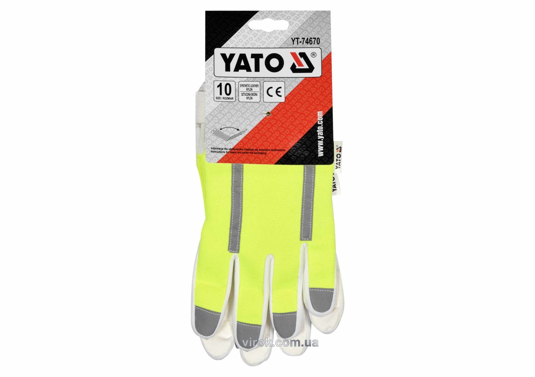 YATO Рукавиці робочі біло-жовті з світловідбиваючою нейлоновою тканиною : екошкіра, розмір 10