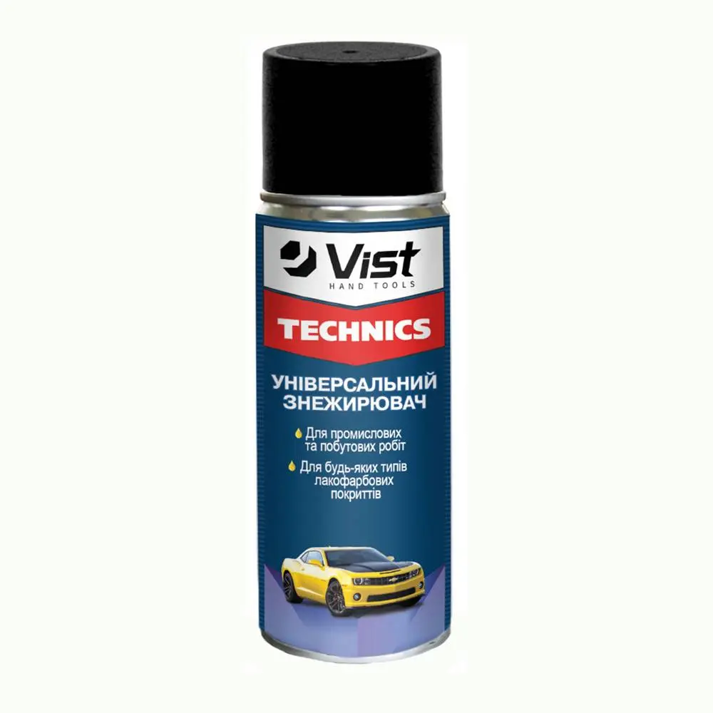 Універсальний засіб для очищення різних поверхонь від слідів жиру, масел, мастил, смол. Завдяки аерозольному упорскуванню проникає в самі вузькі і важкодоступні місця. Універсальний знежирювач особливо ефективний там, де неможливий або утруднений традиційний спосіб знежирення. Значно полегшує очищення поверхонь складної форми. Для зовнішніх і внутрішніх робіт. Наноситься на метал, пластик, дерево, гуму, скло, шкіру, бетон. Безпечний для всіх видів лакофарбових покриттів. Завдяки своїм унікальним можливостям широко використовується в побуті, у виробництві, в ремонті і обслуговуванні автомобілів, мотоциклів, велосипедів та ін. Транспортних засобів. Особливості: - легко знежирює поверхні перед ґрунтуванням, фарбуванням, обклеюванням та ін., - якісно очищає деталі, запчастини та інструменти, - активно використовується в процесі ремонту, виготовлення та реставрації виробів зі шкіри, гуми, пластику, - істотно спрощує очищення електричних контактів, вузлів і схем.