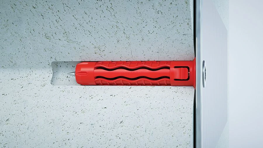Специальные распорные ребра гарантируют заклинивание дюбеля в стенке толщиной от 10 мм и предотвращают его перекручивание. В полнотелых материалах этому также способствуют шипы, расположенные вдоль дюбеля.