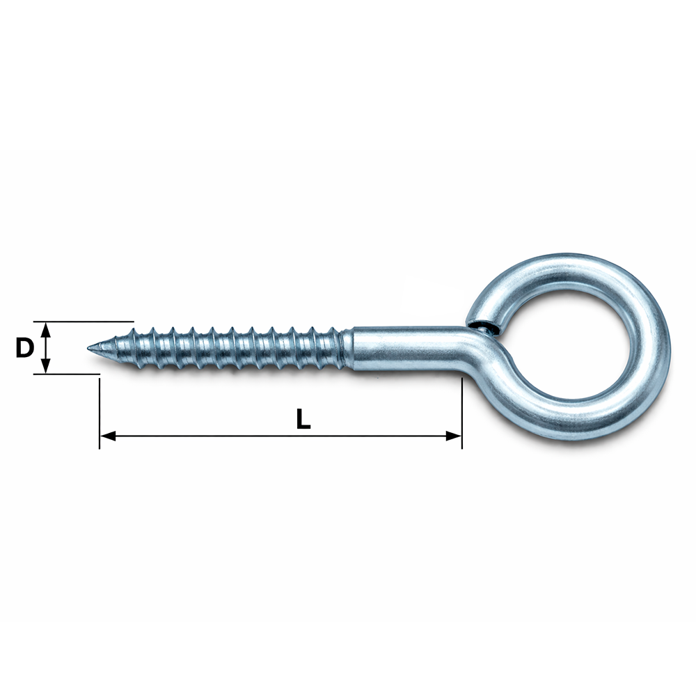 Не заваренное кольцо позволяет быстро и удобно крепить цепи, тросы, веревки и другие элементы. Острый наконечник и древесная резьба обеспечивают легкое вкручивание в деревянные основания, а также возможность использования с дюбелем в бетоне или кирпиче.