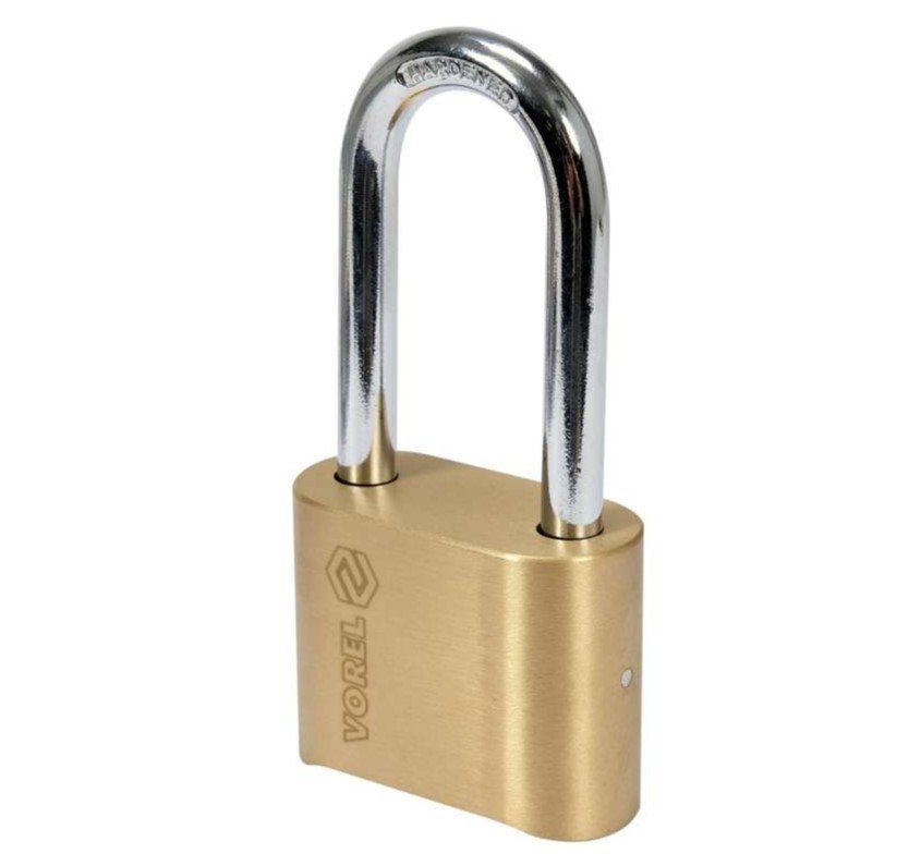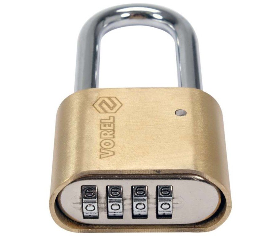 VOREL Замок навісний з кодовим замиканням : латунний корпус- 52х 40 х25 мм, сталева дуга- 56х25х 8 мм | 77618