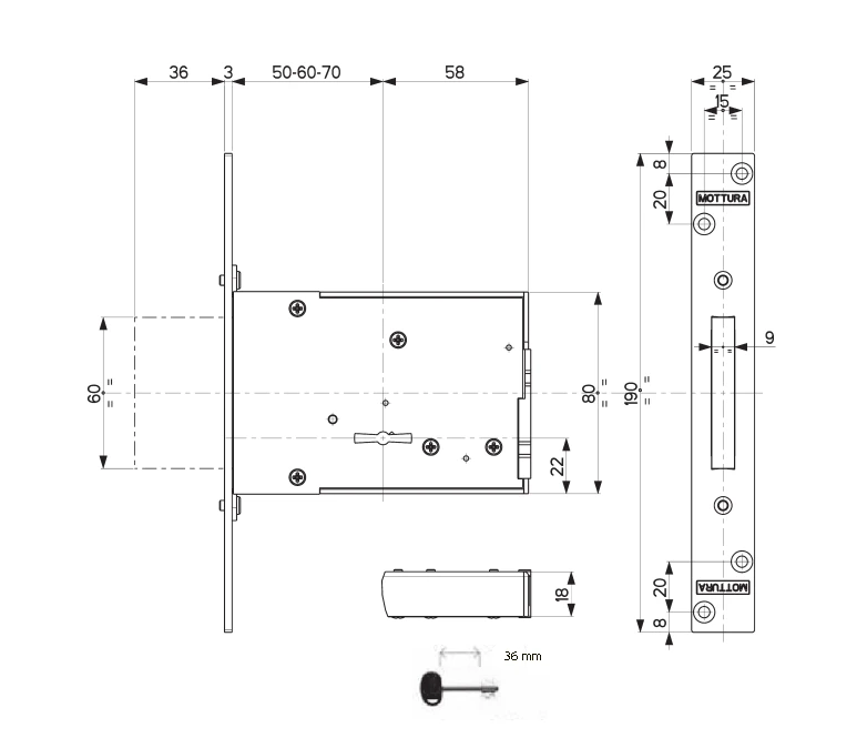 Mottura (Моттура) 40.701.60 Замок врезной сувальдный для металлических, деревянных и пластиковых дверей.