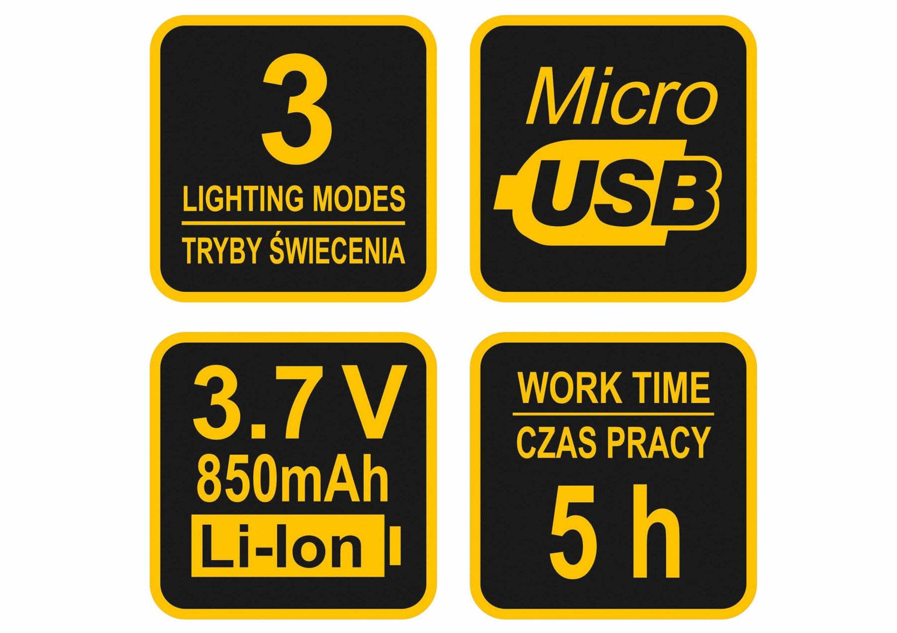 VOREL Ліхтар на чоло акумуляторний світлодіодний : 3Вт; Li-Ion 3,7В, 0,85A×Год, 3 режими, 130+160 lm | 88677