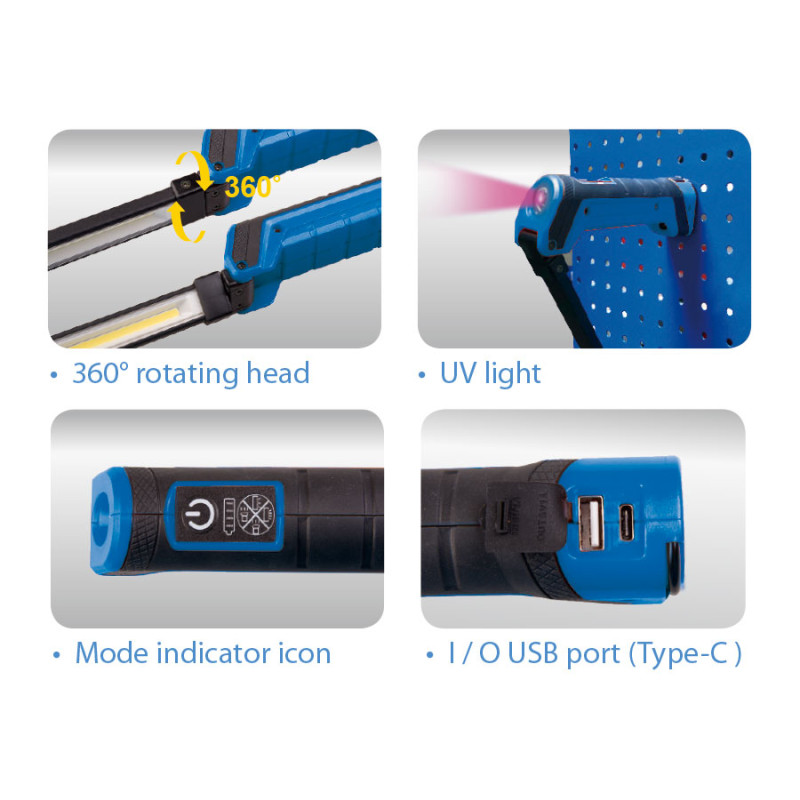 - Источники света – COB 5W и LED 1W (есть ещё ультрафиолетовая лампа 1W).