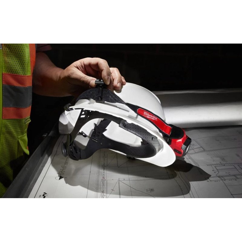 4 монтажных клипсы для крепления на строительную каску и регулируемый ремешок с резиновой накладкой