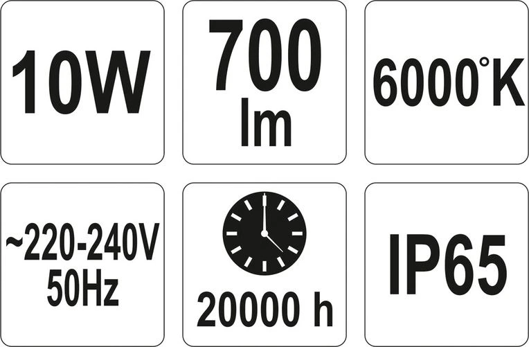 YATO Прожектор діодний, переносний, мережевий; 230 В, 10 Вт, 700 lm, кабель l=1,8 м (DW)