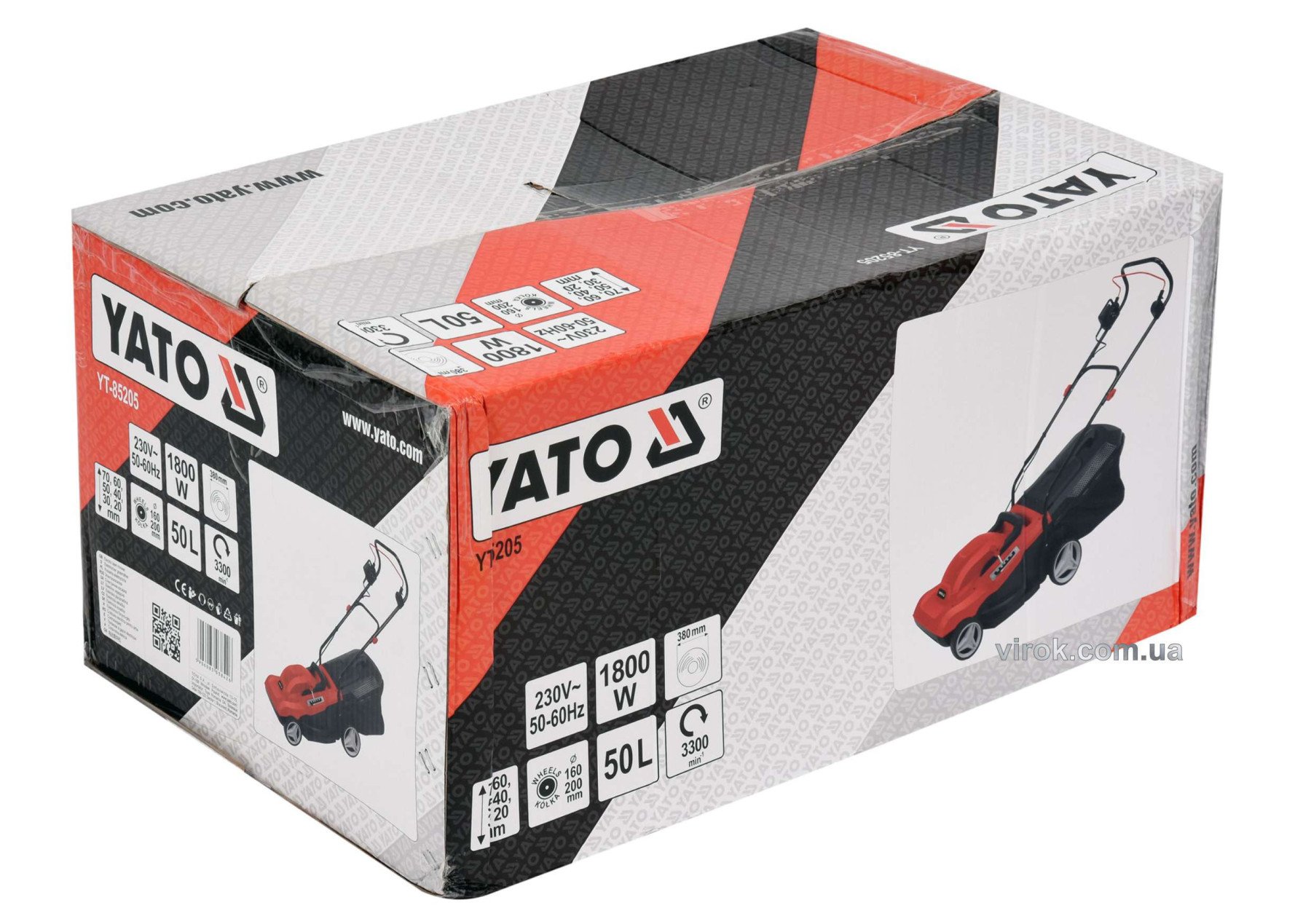 YATO Газонокосарка на 4-х колесах електромережева, 1800 Вт, обрізний діап. Ø= 38 см, ємн.- 50 л