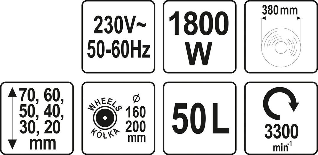 - Висота різу - 20-70 мм
