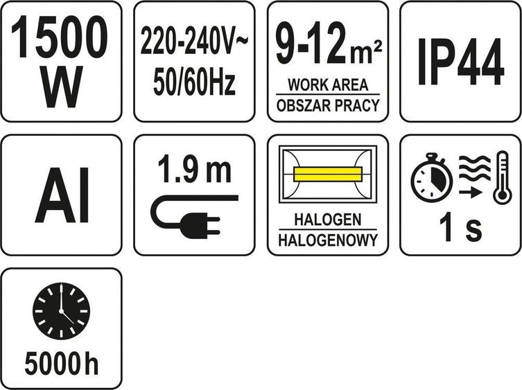 YATO Обігрівач інфрачервоний, підвісн під стелю, ел.-мереж- 230В, 1500 Вт, діапазон- 9-12м²