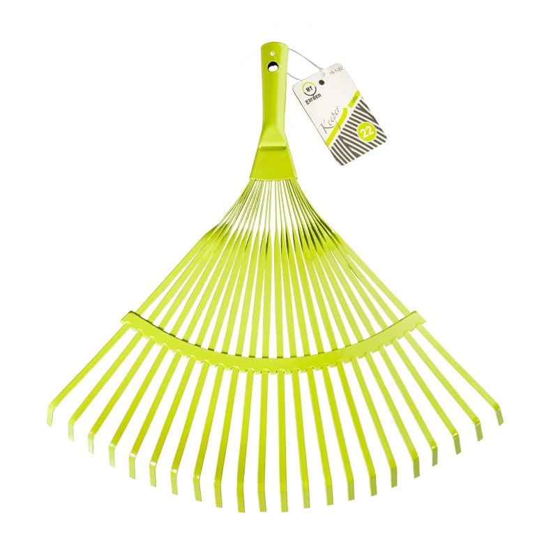 - Граблі мають 22 зубці, виготовлені з якісної пружинної сталі, що дозволяє їм досить щільно прилягати навіть до нерівних поверхонь, чим забезпечується якісний результат роботи.
