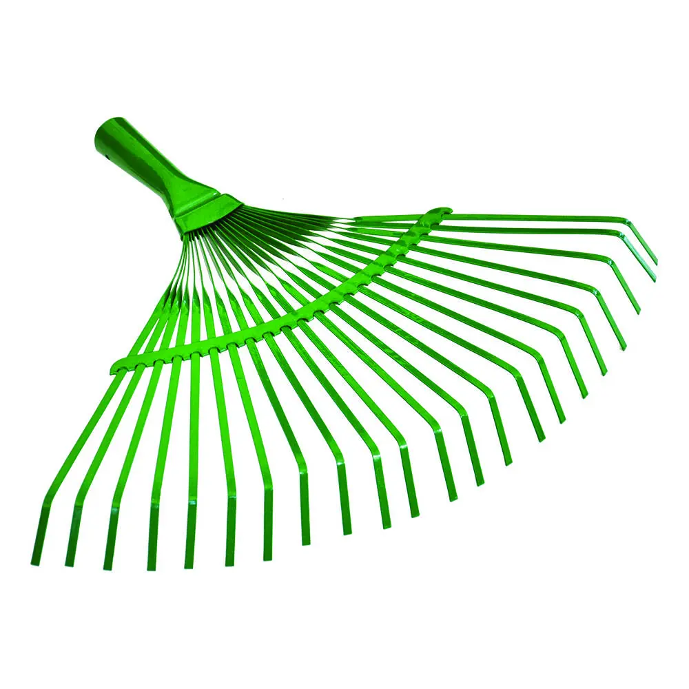 Грабли представляют собой развёрнутую метёлку в форме веера из длинных зубьев, на конце согнутых к основанию, которые изготовлены из пружинного металла и окрашены. Они густо расположены и имеют большую длину. Рабочая ширина 430 мм. Посадочный диаметр под ручку 30 мм. Веерные грабли предназначены для сбора листьев, скошенной травы, например, после работы газонокосилки, садового мусора. Веерные грабли обеспечивают более быструю и аккуратную уборку листьев с поверхности газонов, не нанося вред почве. Сегодня веерные грабли с широким захватом очень популярны, они обеспечивают экономию сил и времени на уборку, и являются абсолютно незаменим приспособлением.