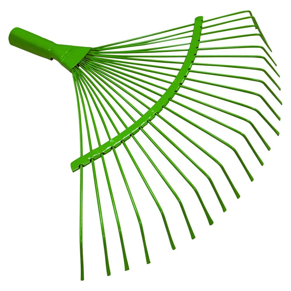 Грабли представляют собой развёрнутую метёлку в форме веера из 14 длинных зубьев, на конце согнутых к основанию, которые изготовлены из пружинного металла и окрашены. Они густо расположены и имеют большую длину. Веерные грабли предназначены для сбора листьев, скошенной травы, например, после работы газонокосилки, садового мусора. Веерные грабли обеспечивают более быструю и аккуратную уборку листьев с поверхности газонов, не нанося вред почве. Сегодня веерные грабли с широким захватом очень популярны, они обеспечивают экономию сил и времени на уборку, и являются абсолютно незаменим приспособлением.