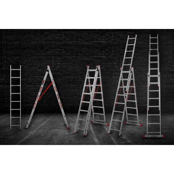 - Вага 12.2 кг Кількість секцій / сходинок 3х8 Профіль прямокутний (товщина 1.2 мм, ширина 62 мм) Максимальне навантаження 150 кг Висота у складеному вигляді 2.11 м Ширина секцій: 480/41/360 мм Висота трьох секцій 5.04 м Висота двох секцій 3.38 м Робоча λ-висота в складеному вигляді 3.09 м Робоча λ-висота двох секцій 4.37 м Робоча λ-висота трьох секцій 5.91 м Материал алюміній -