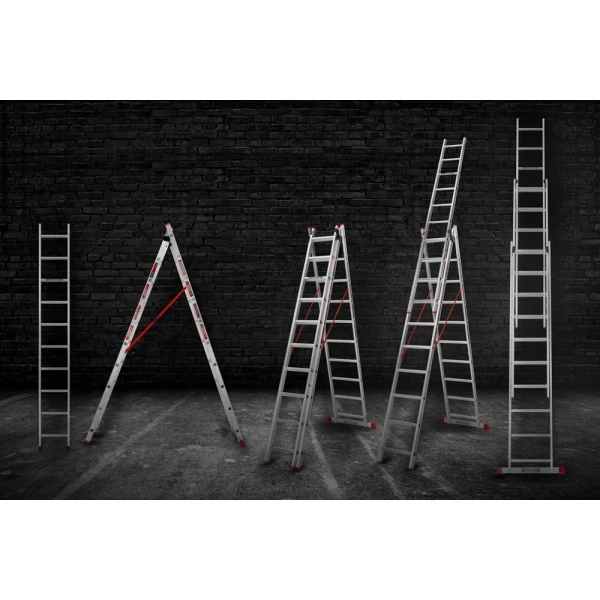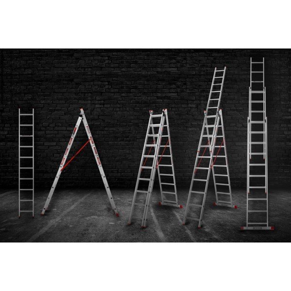 - Вага 14.2 кг Кількість секцій / сходинок 3х10 Профіль прямокутний (товщина 1.2 мм, ширина 62 мм) Максимальне навантаження 150 кг Висота у складеному вигляді 2.81 м Ширина секцій: 480/41/360 мм Висота трьох секцій 6.72 м Висота двох секцій 4.14 м Робоча λ-висота в складеному вигляді 3.64 м Робоча λ-висота двох секцій 5.10 м Робоча λ-висота трьох секцій 7.49 м Материал алюміній -