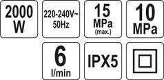 YATO Мийка високого тиску мережева : 2000 Вт, макс. P= 15 МПа, 6 л/хв, шланг- 5 м