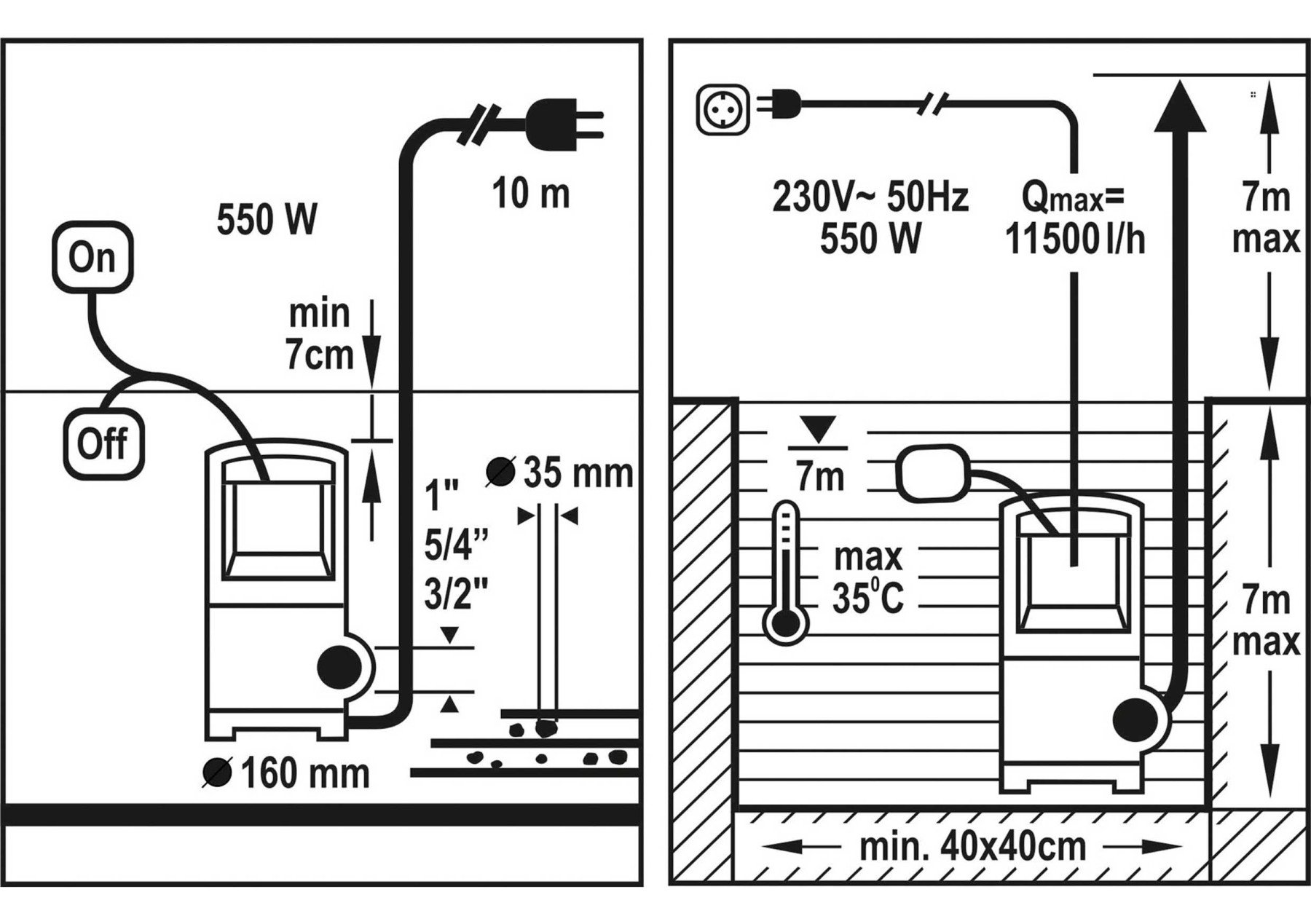 - Максимальний діаметр твердих частин - 35 мм