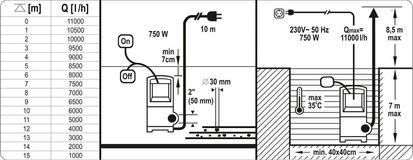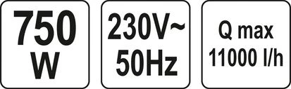 YATO Насос для брудної води мережевий : 750 Вт, 11000 л/год, макс.висота- 8.5м, макс.глибина- 7 м