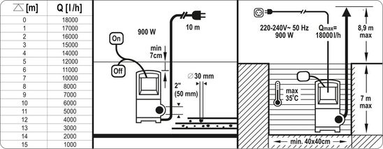 YATO Насос для брудної води мережевий : 900 Вт, 18000 л/год, макс.висота- 8.9 м, макс.глибина- 7 м