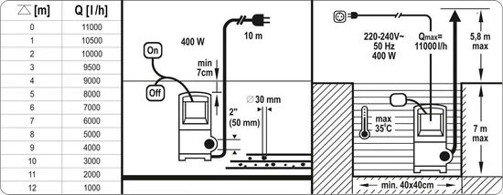 - Автоматический поплавковый выключатель, реагирующий на изменение уровня воды. Двигатель с водяным охлаждением, оснащенный термовыключателем для предотвращения перегрева. прочный корпус из ударопрочного и коррозионностойкого пластика.
