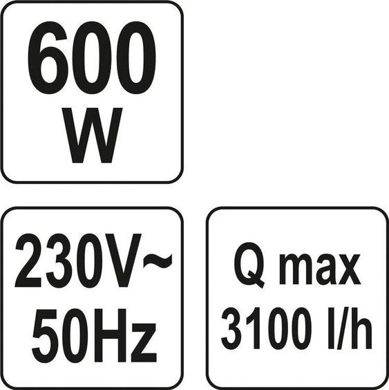 YATO Насос для води поверхневий мережевий : 600 Вт, 3100 л/год, макс.висота- 35 м, макс.глибина- 9 м